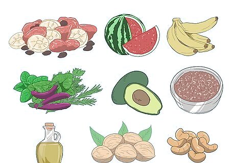 Adjust your diet to offset appetite and weight loss. It is not unusual for RA to cause you to lose your appetite or lose weight, which means you have to pay extra attention to your diet to ensure it’s balanced and healthy. Improving your diet may mean reducing the amount of sugar you eat (which includes honey and syrup), eating more fruits and vegetables, and selecting healthy fats (polyunsaturated and monounsaturated fats). Try using dried fruit to sweeten food, instead of sugar, and include at least one fruit or vegetable at every meal, every day. Go for olive oil, canola oil, avocados, almonds, cashews, walnuts, sunflower seeds, and flaxseeds to get your healthy fat. Select skim, 1%, or 2% milk and low-fat yogurt instead of the higher fat versions.