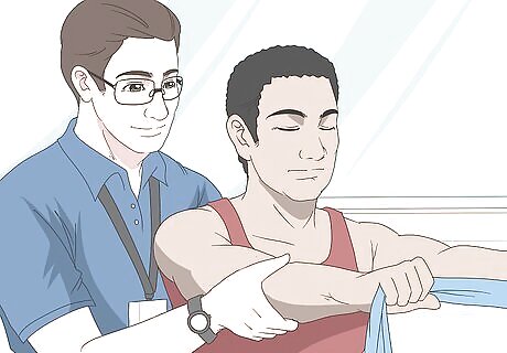 Go to a physiotherapist to learn exercises that will help reduce the pain. Physiotherapists (PT), unlike OTs, focus on exercises or movements you can do with your elbow to help increase its strength, flexibility, and range of motion. These exercises may include strengthening the muscles around your elbow in order to take some of the work away from your elbow when using your arm. PTs can also recommend other at-home therapies you may find helpful. A PT may develop a specific exercise plan or routine for you to perform regularly in order to keep mobility in your elbow for as long as possible.