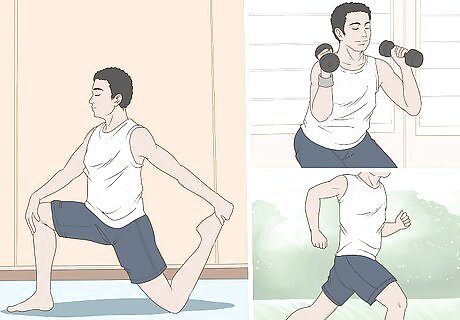 Keep your elbow mobile with strength-training exercises. Having RA doesn’t mean you have to stop using your elbows. In fact, increased physical activities will help strengthen your upper and lower arms. Having stronger muscles in your arms means there is less stress put on your elbows, which will help reduce pain and swelling. Exercises will help keep your elbow flexible, mobile, and ensure your range of motion is maintained. There are 3 types of physical exercises you can perform to help keep your elbows and other joints healthy: range of motion or stretching activities, strengthening activities (i.e., weights), and endurance activities (i.e., cardio). Other types of physical activities you may find useful include: tai chi, yoga, and aerobics.
