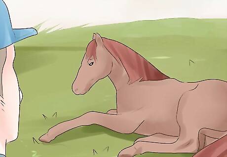 Look for signs of stomach ulcers in foals. Foals may exhibit different symptoms than those of adult horses. Stomach ulcers are very prevalent in foals who have not suckled milk properly and they can actually lead to death. If you notice any of these symptoms, bring your foal to a horse veterinarian immediately. In particular, look for: Colic or extreme abdominal pain Teeth grinding or bruxism Excess salivation Diarrhea Poor appetite Emaciation or poor body condition Attempting to roll on their back