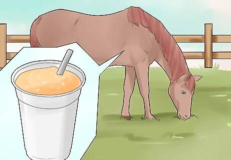 Try other substances that promote protective lining growth. Other substances that give a protective layer in the stomach include slippery elm powder, low protein whey powder, and psyllium husk. These substances can be given as slurry before feeding, or as top dressing in dry feed.