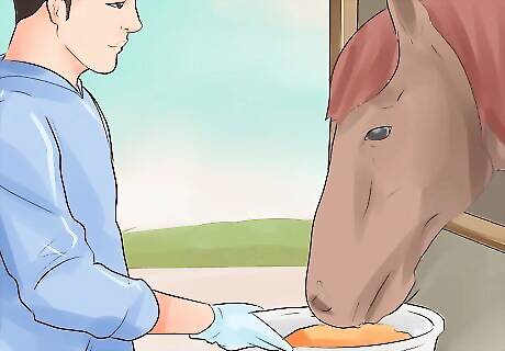 Give your horse histamine Type 2 (H2) receptor Blockers. These drugs cause partial blockage of acid production in the stomach, hence it is given more frequently. In general, you should give your horse this medication three or four times a day. Cimetidine, ranitidine, and famotidine are variations of this medication. Dose of cimetidine (300 to 600mg 3 to 4 times a day). Ranitidine is effective in foals and is given once a day.