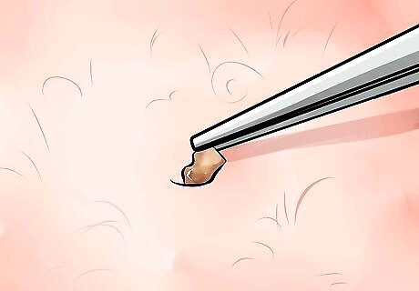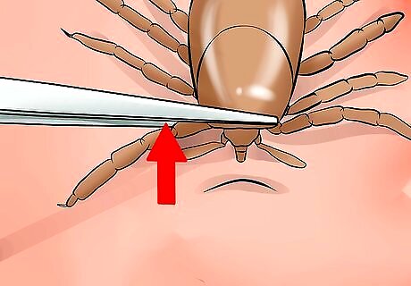 Grasp the tick as close to the skin as possible with a pair of tweezers. Get the tips as close to the bottom of the tick as possible so it does not break when you pull it out.