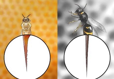 Determine what stung you. The initial first aid for a bee or wasp sting will depend upon which insect stung you. In both cases, however, first aid will consist of reducing the discomfort and swelling to the area. Wasps do not leave a stinger behind, while honey bees (though not bumblebees) will leave a barbed stinger behind.