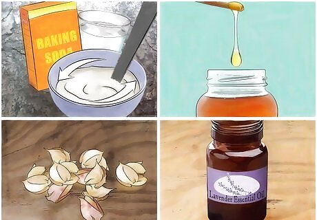 Apply some home remedies. For ordinary stings that don’t cause an allergic reaction (see below), home treatment after applying initial first aid is adequate. In most cases, the signs and symptoms associated with the sting should disappear within several hours or a day or two. There are, however, some home remedies that can provide relief from the sting of the sting, so to speak. These include: Make a paste of baking soda and water to place over the area. The baking soda helps to soothe the area, reduce the swelling and calm any itching. Apply honey to the area to reduce the swelling and discomfort. Honey has natural antibacterial properties. Crush a couple of cloves of garlic and apply the juice to the area. Garlic also has natural antibacterial properties. Lavender essential oil can help reduce the pain of bee and wasp stings when a couple of drops are applied topically to the affected area.