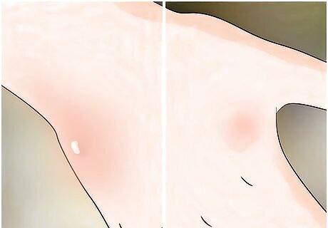 Determine what a sting looks like. Bee stings and wasp stings look very similar for the most part. Unless you see the insect sting you, it may not be apparent which one it was, so knowing what to look for in the sting can be helpful. You will experience instant and sharp burning pain at the site of the sting. A red welt will appear within minutes. A small white spot will be in the center of the welt where you were stung. The area may swell slightly around the sting. Look for a stinger in the center of the red area to determine if was a honeybee which stung you. Cater your treatment based on the sting and your body's reaction to it.