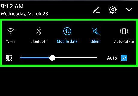 Open your Galaxy's quick settings panel. Slide down the notification bar from the top of your screen to open your quick settings.