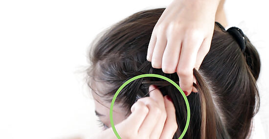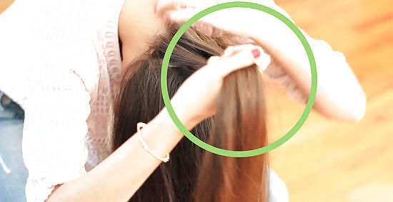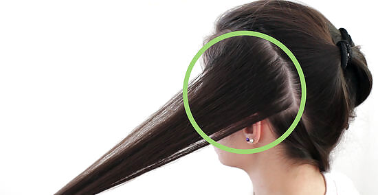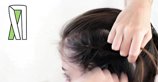 Gather a thin section of hair from the nape of your neck. The section needs to span from one side of your nap to the other, and be about ½ inch (1.27 centimeters) thick.