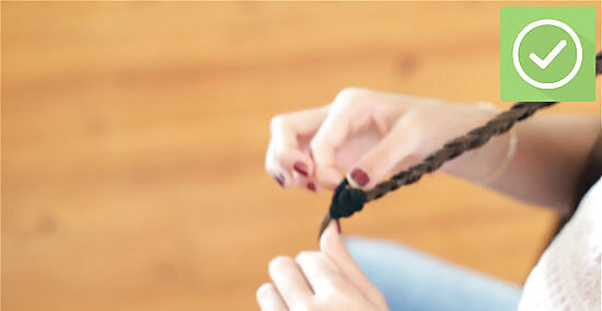 Continue French braiding until you reach the back of your crown. Secure the braid with a small hair tie or a clear elastic. The rest of your hair should still be hanging loose. Keep your stitches small, tight, and neat.