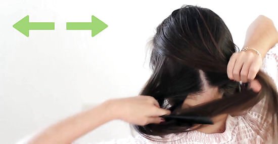 Lean forward and let your hair fall over your face. This style is a simpler take on the upside down braid. It works best on long hair that falls past your shoulders. You can also create two faux upside down braids. First, part your hair down the center on the back of your head. Brush your hair out after you lean forward. Even if you brushed it earlier, new tangles may have developed.