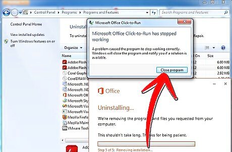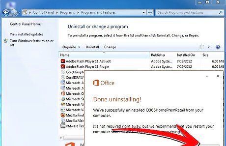 Click the Close button on the info box by Office, telling "Done uninstalling!".