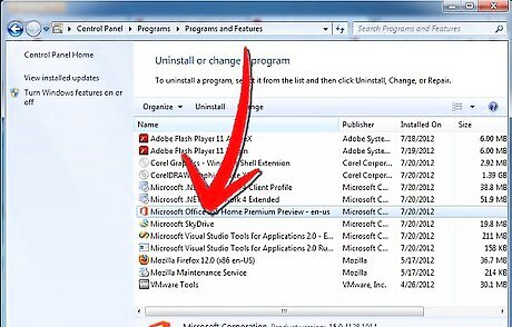 Using any administrative account on your Windows, you locate and launch the "Microsoft Office 365 Premium Preview -en-us" program (Note: Product version, 15.0.4148.1014) from the "Uninstall or change a program" list.