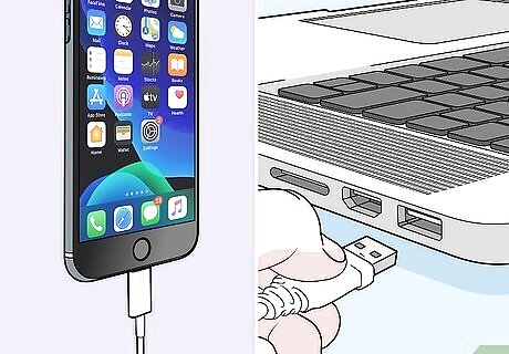 Plug in your iPhone to your computer. Using the lightning cable that came with your iPhone when you bought it, connect your iPhone to your computer with the USB port. When your iPhone is connected, it will show up in your iTunes display.