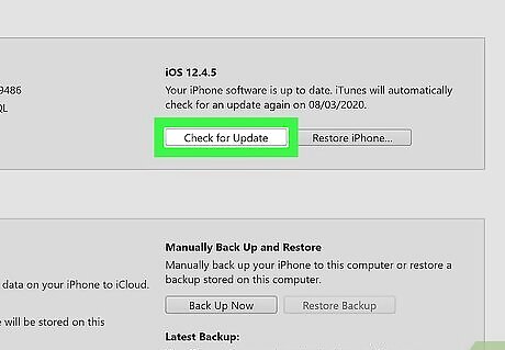 Click Check for Update. You'll see this under the current iOS version your iPhone is running. You might get a pop-up when you first plug in your iPhone to update your iOS.