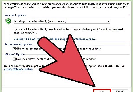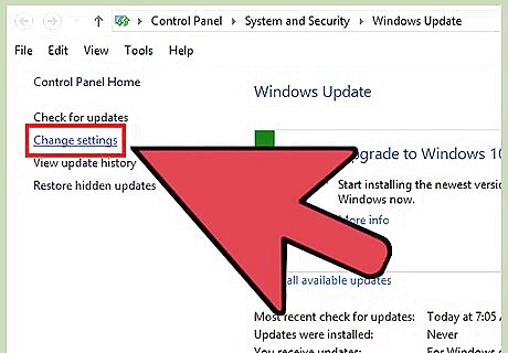 Click on “Windows Update,” then click on “Change settings” in the left pane. If using Windows 8, click on “Choose how updates get installed.”