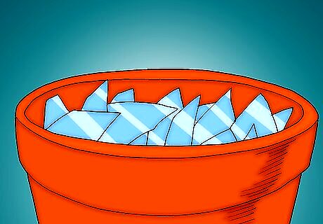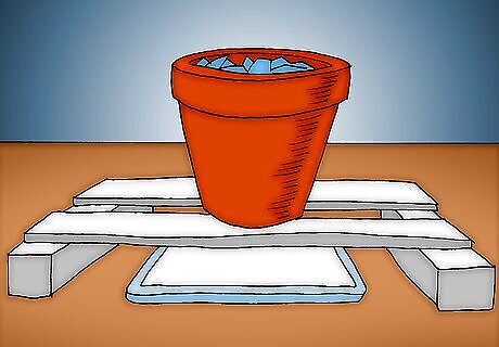 Create and make the opening in the base of the pot larger with a hammer and chisel or even a heavy duty screwdriver. The hole can be rectangular, round, or any style you like. The size does not need to be exact, or edges perfectly smooth. Keep in mind that if the hole is small, the glass will flow out very slowly. A hole over 7/8" diameter is recommended as a minimum. In this image you can see the hole chipped away.