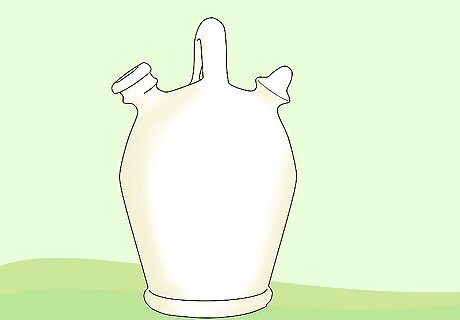 Buy a traditional botijo. They are made of white or red clay. You might be able to pick one up on one of your travels to Spain, or purchase one in a specialty store (either in your area or online) or through an importer. The shapes and colours vary, dependent on where you've purchased the botijo from. If the botijo is glazed and very artsy or heavily decorated, it's not suitable to drink from. Look for a plainer one.
