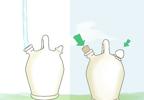 Fill the botijo with fresh water. Fill with water from the tap (this is what it is designed to take). Simply pour straight into the large central hole. Cover with either a cork stopper made for the hole shape or with something like muslin or cheesecloth. You may need to tie the cloth in place with string or a rubber band. Place the botijo in the shade, away from sunlight. If you live in Spain or you're vacationing there, it is usual to put the botijo out in the garden or near a window. However, it is important to always cover it under some fabric netting, to avoid any insects getting in and spoiling the water. This is probably no different wherever you live, unless you're somewhere that is miraculously hot and insect-free!