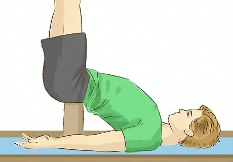 Position the block under your pelvis in Viparita Karani. While lying on your back, place the block under your pelvis. Raise your legs in the air so that they are aligned straight above the block. This reduces lower back pain and pressure while supporting the hips. Inverting your normal posture in this pose encourages calmness in the body.