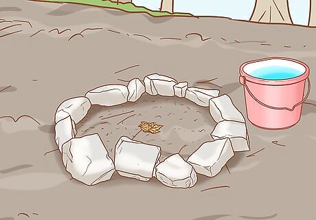 Build a ring of large rocks around where you'll be starting your fire. This ring of rocks will help prevent your fire from spreading beyond where you want it. It will also act as a shield to protect your initial flame from the wind. If the wind is blowing strongly, make your ring of rocks higher on the side from which the wind is blowing. Rocks that are around half the size of your head will work great for purpose.