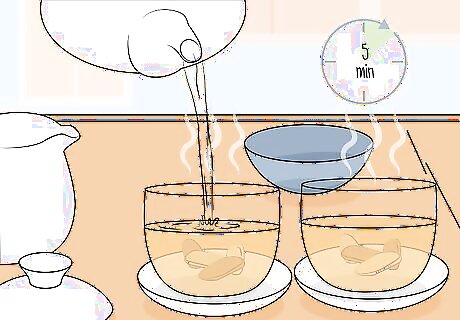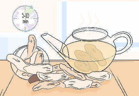 Let the root steep for 5 to 10 minutes. Allow the dried burdock root to sit undisturbed in the hot water for a few minutes. The hot water over the dried root will rehydrate the root and release the compounds inside of it. For a lighter flavor, steep the tea for 2-3 minutes.Tip: If you aren’t using a tea bag or strainer, allow the dried burdock root to soak in the water for 10 minutes.