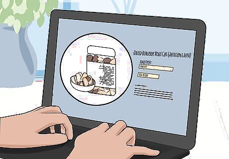 Purchase dried burdock root from a reputable source. Because it’s classified as an herbal supplement, dried burdock root isn’t regulated by many governmental consumer advocacy organizations, such as the FDA. Whenever you’re buying dried burdock root, make sure you’re getting it from a good source such as a health food store, vitamin and supplement shop, or a reputable online retailer. Many major chain vitamin and supplement stores carry dried burdock root that you can trust.