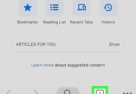 Use tabs. Tabs are different browser windows that allow you to keep more than one website open and accessible at the same time. To open a new tab, tap ⋯ at the bottom-right corner, then tap + New Tab. To view open tabs, tap the square in the bottom icon row containing a number. Swipe up and down to see what’s open, then tap a tab to bring it into view. To close a tab, tap the square to view all tabs, then tap the X at a tab’s top-right corner. To view recently-closed tabs, tap the third icon at the top of the screen (a square with an overlapping rectangle).