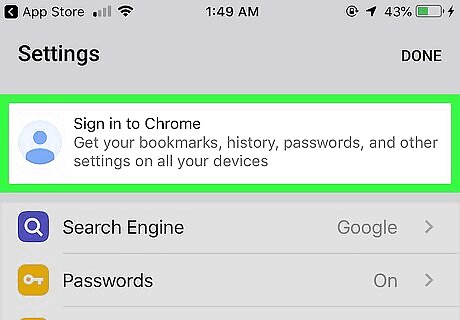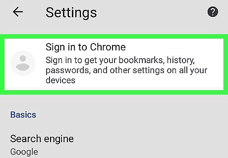 Sign into Chrome. This is optional, but helpful if you want your bookmarks, passwords, history, and preferences to be available anywhere you use Chrome. Here’s how: Tap ⁝ at the top-right corner. Tap Settings. Tap Sign in to Chrome. Follow the on-screen instructions to sign in.