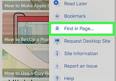Use “Find” to find strings of text on a website. If you’re looking for a certain word or sentence on a page, you can use these steps: Press ⌘ Command+F (Mac) to open the Find window. A window will appear at the top-right corner. Type the text you’re looking for. Press ⏎ Return. All matches on the page will be highlighted. Use the arrows in the Find box to browse through all instances of the text.