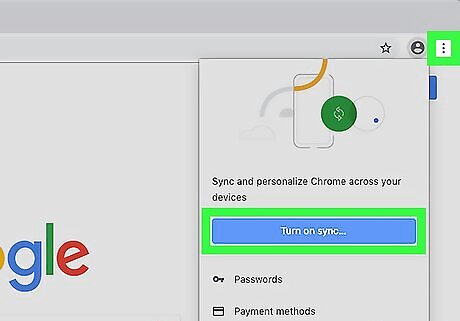 Sign in with your Google account. This is optional, but helpful if you want your bookmarks, passwords, history, and preferences to be available anywhere you use Chrome. Here’s how: Click the profile icon near the top-right corner of your browser. If you’re not signed in, it’ll be a gray circle with a gray outline of a person inside. Click Turn on sync. Sign in to your Google account. Click Turn on when prompted.