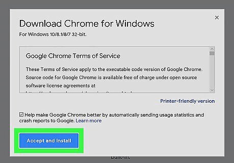 Install Chrome on your PC. If you haven’t yet installed Google Chrome, you can do so now for free. Here’s how to get it: Go to the Chrome download page and click Download Chrome. Click Accept and Install. Click Run or Save if prompted. If you clicked Save, double-click the file you downloaded to run it, and then follow the on-screen instructions to install. Follow the on-screen instructions to install. Now that you’ve installed Chrome, you can open it by clicking Google Chrome in the Start menu. If you're not on a Windows computer, jump ahead to our sections on Mac, iPhone/iPad, and Android.