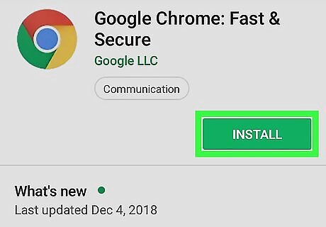 Install Chrome. Chrome comes pre-installed on most Androids. You should find its a round red, blue, green, and yellow icon on the home screen or in the app drawer. If you don’t have Chrome, here’s how to get it: Open the Play Store Android Google Play. Type chrome into the search bar and press the Enter key. Tap INSTALL next to “Chrome.” Follow the on-screen instructions to install. To open Chrome, tap its round red, blue, yellow, and green icon on the home screen or in the app drawer.