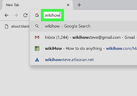 Search the web. You can use the search box at the top of Chrome to either enter a direct URL (e.g., wikihow.com) or search the web. Here’s how: Click the search box. Type your search term (or a URL if you want to access a specific website). Press ↵ Enter.
