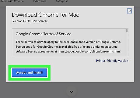 Install Chrome on your Mac. If you haven’t yet installed Google Chrome, you can do so now for free. Here’s how to get it: Go to the Chrome download page and click Download Chrome. Click Accept and Install. Open “googlechrome.dmg” (the file you just downloaded). Drag the Chrome icon to the Applications folder. Enter the administrator password if prompted. Click the Chrome menu at the top of the screen and select Finder. Click Eject. Now that Chrome is installed, you can open it by clicking Google Chrome in the Applications folder.
