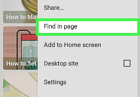 Search within a webpage. Use “Find” to find strings of text on a website. If you’re looking for a certain word or sentence on a page, you can use these steps: Tap ⁝ and select Find in page. Type the text you’re looking for. All matches on the page will be highlighted. Use the arrows in the Find box to browse through all instances of the text.