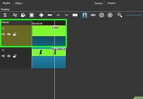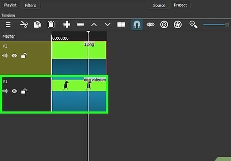 Insert your video in the first channel. Click and drag your green screen video from the "Playlist" window onto the top video channel, then release it.