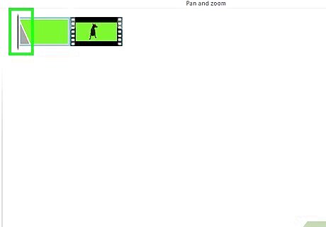 Apply the transition. Click and drag the second video (the green screen video) over the background clip, then release it when you see a blue triangle appear in the timeline. If you drag the video too far, the videos will just switch positions. If this happens, press Ctrl+Z to reset the clips and try again.