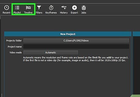 Click both the Playlist tab and the Timeline tab. Both of these options are at the top of the Shotcut window. Doing this adds a "Timeline" section at the bottom of the window and a "Playlist" section on the left side of the window.