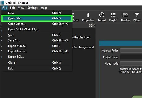 Add files to Shotcut. Click Open File in the upper-left side of the Shotcut window, then select the files that you want to add to Shotcut and click Open. You should have at least two files: the green screen video, and the background video or image that you want to use to replace the green screen.