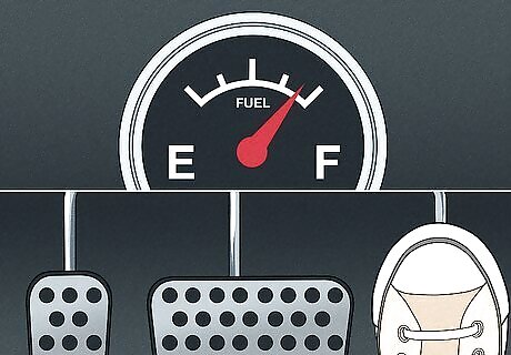 Try different acceleration techniques. Monitor fuel efficiency while you use each. For instance, try accelerating slowly for a few weeks, then try accelerating a bit faster, and then try accelerating more quickly. Compare the mileage results of the different techniques and adopt the most fuel-efficient one. After reaching your desired speed, coast as long as possible until you need to stop or turn. Be mindful of how you start your vehicle at stoplights. Your hybrid is programmed to turn off the engine when in park or when you’re not moving. It will turn on again when you resume motion. Use your foot to gently apply pressure to the gas pedal to start the car in motion.