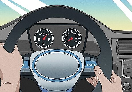 Use cruise control. With the cruise control on, you’re less likely to rev the engine and accelerate quickly, which can cause the gas engine to kick in to provide the extra push that rapid acceleration requires. Lay off the gas and set your cruise control to your desired speed whether you’re on the highway or on a street. If you don’t have cruise control, try to keep your speed constant. Not only does accelerating your vehicle use energy, slowing it wastes your energy as well. A constant speed is the most energy-efficient for your vehicle.