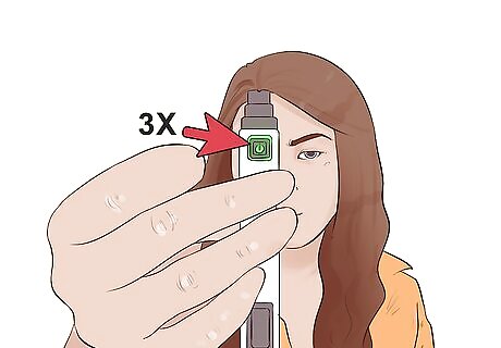 Turn the vaporizer on. The iTaste VV 3.0 has three buttons, the +, –, and the power/fire button on top. To turn the device on, press the fire button three times in a row. When the device turns on, the light around the fire button will flash three times. The triple click to activate the device is a safety feature that prevents the fire button from being pushed unintentionally and juice being wasted.