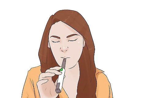 Release the fire button and inhale. Once you’ve taken your pull of vapor, release the fire button to stop the vaporizing process. Inhale the vapor that you drew into your mouth, and then exhale it like you would a normal breath. Once you exhale, wait a moment and decide if you want to take another puff.