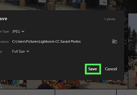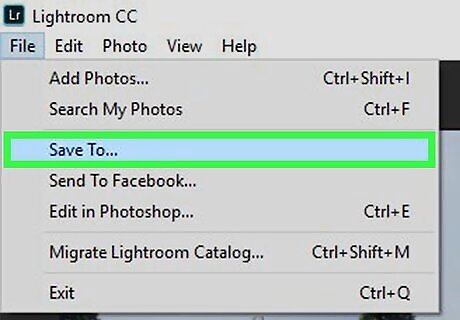 Open the photo you want to save or export. This opens a preview. If you’re using the web version of Lightroom, click Save & Exit at the top-left corner of the page. You don’t have to use the rest of this method.