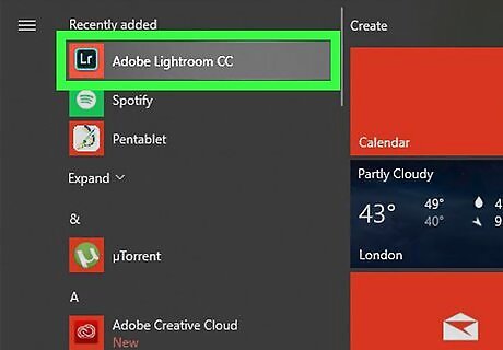 Open Lightroom. If you have the application installed, you’ll find it in the All Apps area of the Start menu (Windows) or the Applications folder (macOS). You can also use Lightroom online at https://lightroom.adobe.com.