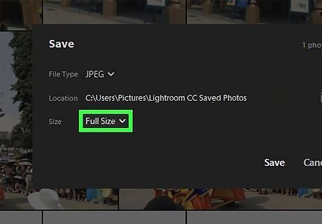 Select your desired size. If you selected JPEG, choose the size at which you’d like to save the photo from the drop-down at the bottom of the window.