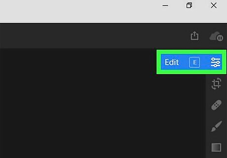 Click the edit icon. It’s at the top of the column that runs along the right side of the screen (looks like several horizontal sliders). Editing tools will open in the far right panel. You can also go into editing mode by pressing the E key on the keyboard.