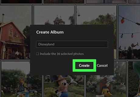 Type an album name and click Create. This creates the album and adds it to the “Albums” section of the left panel.