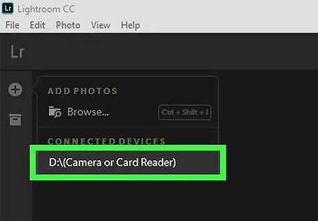 Click +. It’s at the top-left corner of Lightroom. A context menu will appear, displaying all connected devices.