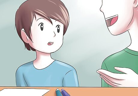 Teach the child to ask for help using visual cues. Pictures can also be used to teach the child how to ask for help. Some cards which specifically imply a child needs help can be held by a child and raised for the teacher to see when they need help. With time, they can be taught to do away with this practice and to raise their hand instead.
